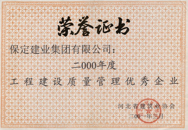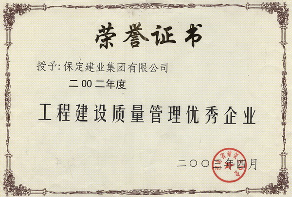 03年度保定市優(yōu)秀質(zhì)量管理單位