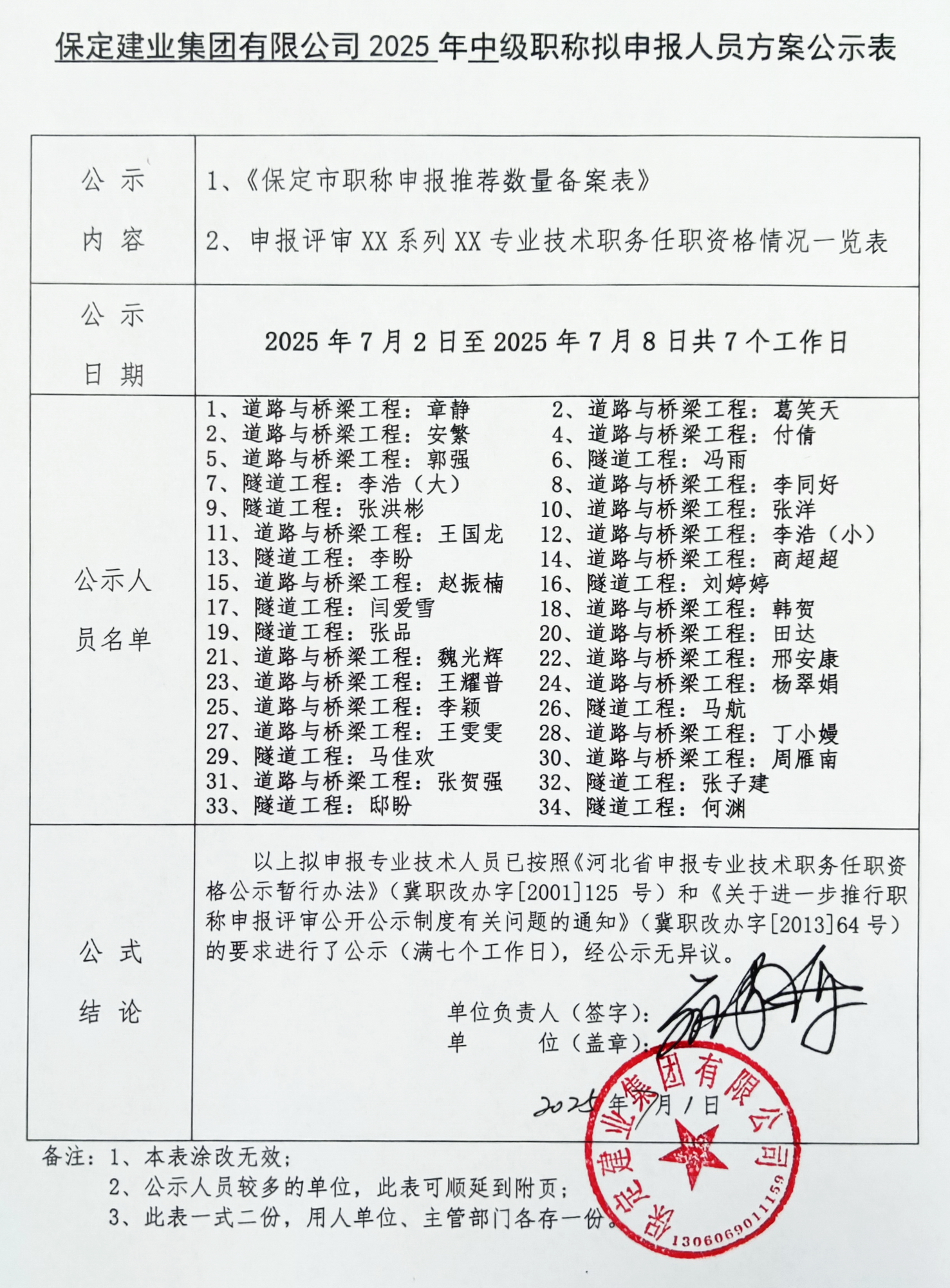 保定建業(yè)集團(tuán)2025年中級(jí)職稱擬申報(bào)人員公示二