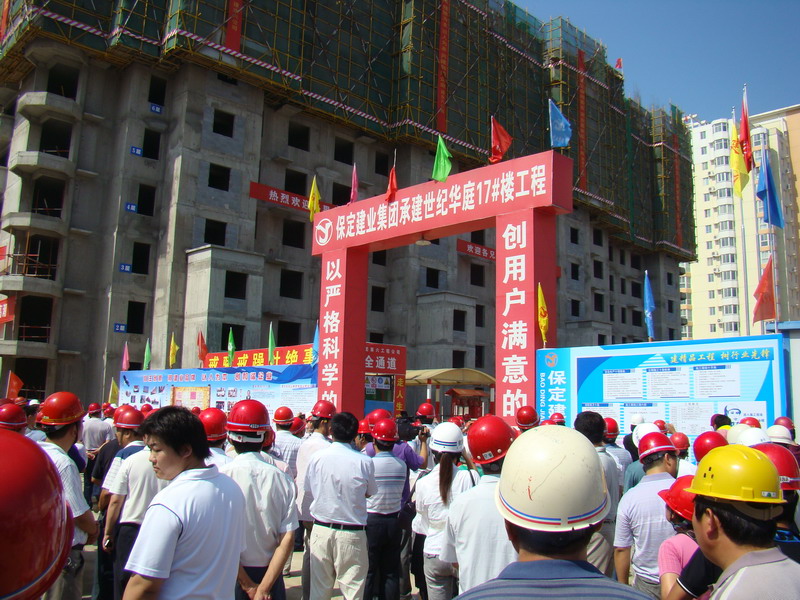 2010年7月20日,由市建設(shè)局安監(jiān)站在華北電力大學(xué)會(huì)議室組織召開了建設(shè)系統(tǒng)安全文明施工現(xiàn)場會(huì)。會(huì)議有省、市安監(jiān)站領(lǐng)導(dǎo),市、縣、區(qū)建設(shè)局、安監(jiān)站主要領(lǐng)導(dǎo),全市及駐保主要建筑施工企業(yè)負(fù)責(zé)人參加。集團(tuán)六公司世紀(jì)華庭17號(hào)樓項(xiàng)目部被選為與會(huì)人員參觀的樣板項(xiàng)目部。