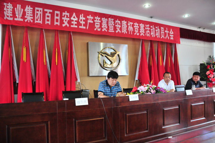2012年5月18日在集團(tuán)公司六樓會議室召開“百日安全生產(chǎn)競賽暨安康杯競賽活動”動員大會。各公司領(lǐng)導(dǎo)班子、項(xiàng)目經(jīng)理代表、集團(tuán)相關(guān)部室參加會議。