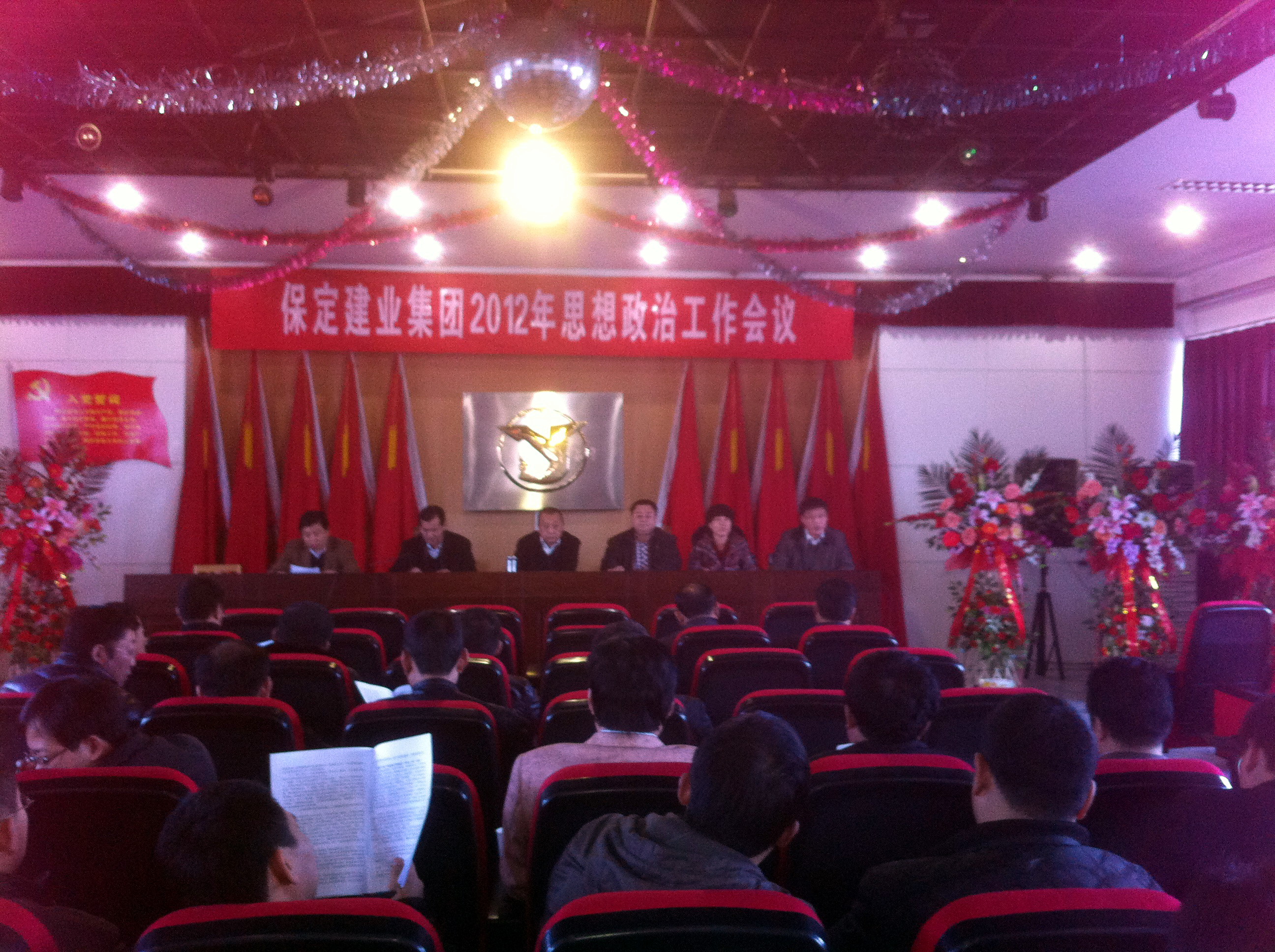 2012年3月14日,保定建業(yè)集團(tuán)有限公司2012年思想政治工作會(huì)議在莊嚴(yán)的國歌聲中拉開了序幕,會(huì)議由黨委辦公室主任馬亞軍主持,集團(tuán)各公司黨、政、工、團(tuán)、婦、武裝、保衛(wèi)負(fù)責(zé)人參加會(huì)議。